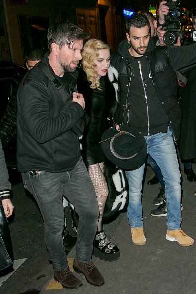 The Queen of Pop lifted her skirt as she walked away from photographers during arrivals on Sunday night - revealing her bottom clothed in just fishnet tights and a black thong.